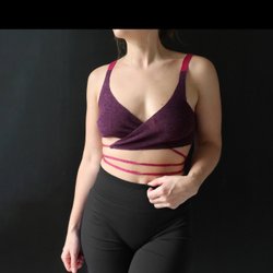 Purple burgundy red cross wrap knit crop top / Lila vinröd korsstickad, Zara, S
