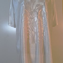 Elegant klänning med stor sjal i handmålat råsiden, strl 34-36