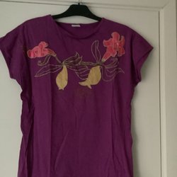Svart långärmad t-shirt med lila mönster, bred modell stl 40/42
