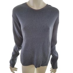 HUNKYDORY Dam Tröja L Grå Bomull 100% Våffelstickning Lång ärm Juveler Rund