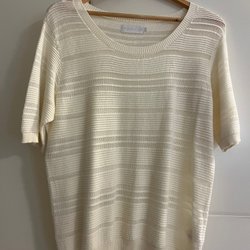 H&M Dam Tröja L Krämfar gad Bomull Flätstickad Lång ärm Rund urringning
