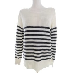 SOYACONCEPT Dam Tröja L Vit Bomull Våffelstickning Lång ärm Ränder Rund
