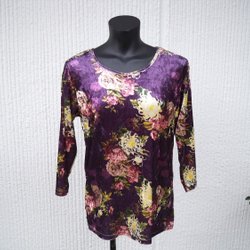 Lila Blommig Topp Stl. XL Krossad Sammet. Provad