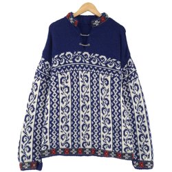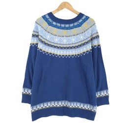 Nordic Vintage Tröja Blå Skandinavisk Fair Isle Varm Stickad Dam storlek 2XL