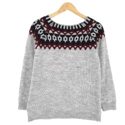 Nordic Vintage Damtröja Ull Fair Isle Grå storlek S