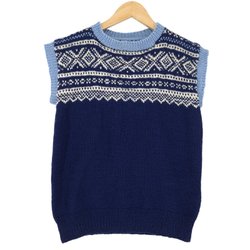 Nordic Vintage Tröja Blå Skandinavisk Fair Isle Varm Stickad Dam storlek L