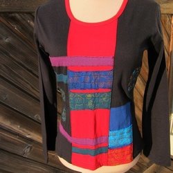 Boho, Etno, Hippie. Svart/Färgglad elastisk bomull. Stl M. Applikationer, brodyr