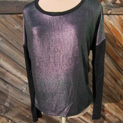 Svart tröja. Skimrande, svagt glittrande framsida i lila o grönt. Stl L