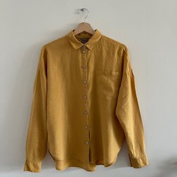 Lindex senapsgul linneskjorta, storlek XS