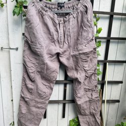 Olars Ulla härliga byxor i lin linne med fina ryndetaljer på benen XL