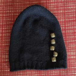 Flerfärgad mössa, bubbligt mönster, handstickat