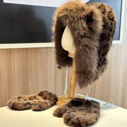 Leopard Plysch Hatt och Handskar Set One Size