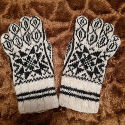 Vit, svart handstickade ullvantar