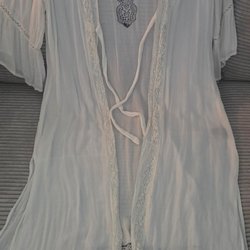 Glamorös vit, kort kimono.Glansig.Polyester. Storlek M.
