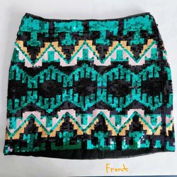 H&M Divided Sequin Mini Skirt EUR 36 / US 6 – Green Black Geometric Party