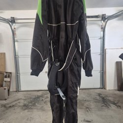 Fristads fodrad mörkblå, röd, gul overall, storlek L 54-56