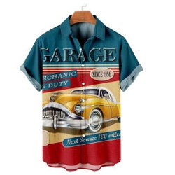 Rockabilly skjorta hawaii tema och bilar