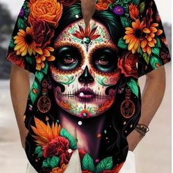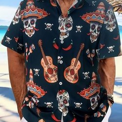 Rockabilly skjorta med tryck fram o bak - Mexikansk döskalle