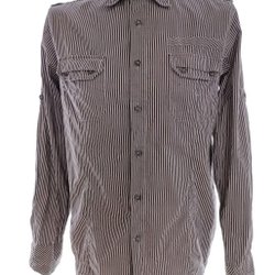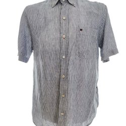 Trevlig gråvitrandig skjorta i mjuk och skön kvalitet, kort ärm - storlek M