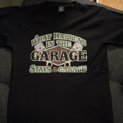 M - What Happens In The Garage… Svart t-shirt