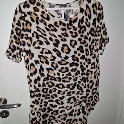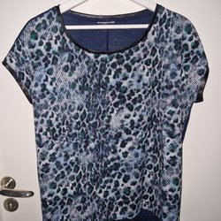 Blå t-shirt leopard topp S M 36/38