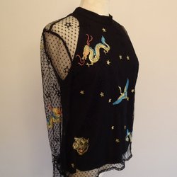 Superdry svart blus med ärmar i spets och broderade applikationer, storlek EU 40