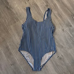 Blå/vit randig baddräkt med byststöd strl 40