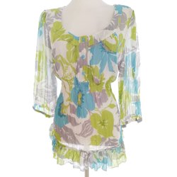Dam Tunikablus knäppt 46 Grön Kort ärm Växtblad