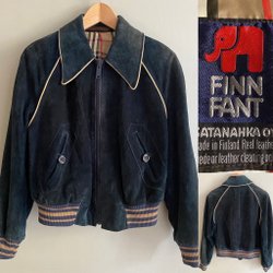 Äkta Vintage 70-tal Mockajacka Mörkturkos Finn Fant Läder Dam 40/42, Herr 46/48