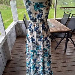 Springfield mörkblå blommig klänning, storlek 38