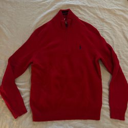 Röd stickad half zip tröja från Ralph Lauren i strl. S