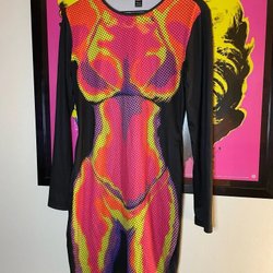 SHEIN svart/rosa/gul/lila klänning, storlek L
