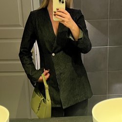 Co’couture-kavaj i denim med pinstripes och strass