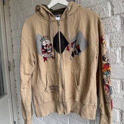 Ed Hardy beige hoodie, storlek L