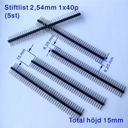 5st 40-stiftlist med 2,54 mm långa stift 13mm, koppar, male pin headers 1x40p