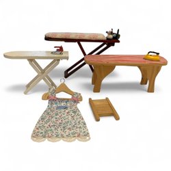 Miniatyr Strykbräda Strykjärn Dockhustillbehör Dockhus Leksaker Vintage