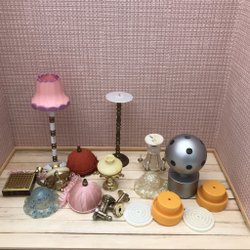 Retro vintage rosa tjusig golvlampa lampa defekt möbler till Lundby dockskåp