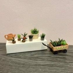 Miniatyrer till dockskåp tittskåp blommor krukor krukväxter trädgård vattenkanna