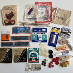 (1168) Knappar band tråd pyssel handarbete plast sy retro vintage