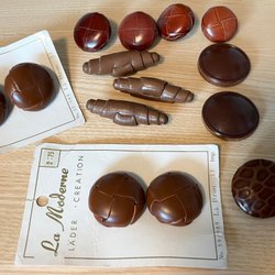 Parti med bruna skinnknappar i olika storlekar