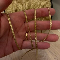 40 m. Dekorband, dekorsnodd, dekorrep. 5 mm bredd. Guldgul/silver.