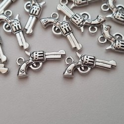 2 st pistoler, berlocker / charms för smyckestillverkning (silverfärgade)