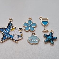 5 st blåa berlocker, hänge / berlocker
