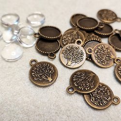 Superfint Livets träd set med Cabochoner flatbacks i glas med ramar i brons !