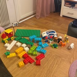 De danska byggklossarna Lego har funnits i över 70 år och 1969 lanserade företaget en ny sorts leksaksklossar. De kallades för Duplo och är anpassade till barn som är mellan två och sex år gamla. Duploklossarna är dubbelt så stora som de ursprungliga, små lego-bitarna och är därför svårare för små barn att sätta i halsen. De båda sorterna går dock att använda med varandra. Precis som små legobitarna och figurer kommer i set och färdiga satser, gör även Duplo det. Finn Duplo djur, både exotiska tigrar och tama kossor, och färdiga byggsatser att bygga exempelvis en duplo bondgård eller en stad. Annonserna läggs upp av privatpersoner och företag och innehåller både oöppnade förpackningar med byggsatser samt enstaka figurer. Med lite tur är de i gott skick! Köp till fasta priser eller delta i en auktion. Hitta fynd som tågbanor och räls eller en byggsats till en lastbil. Kanske till och med ett flygplan!