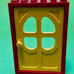 Fabuland Lego Röd Dörr med Gult Fönster Högerhängd