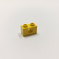 Lego - technic - 2x2 - modifierad - pin hål - part 2444 - gul