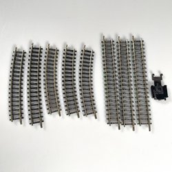 Roco skala N, 8 st blandade skenor och en Minitrix elanslutning