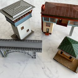 H0 4 st Byggnader, 2st Ställverk , Kiosk, och Bro