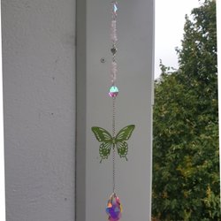 Solfångare med rosenkvarts & fjäril
